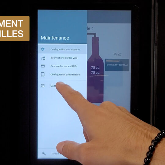 Lors du premier démarrage, aucune étiquette de vin n’apparaîtra encore. Pour configurer vos bouteilles et les afficher sur l’interface, rendez-vous dans la partie Maintenance.