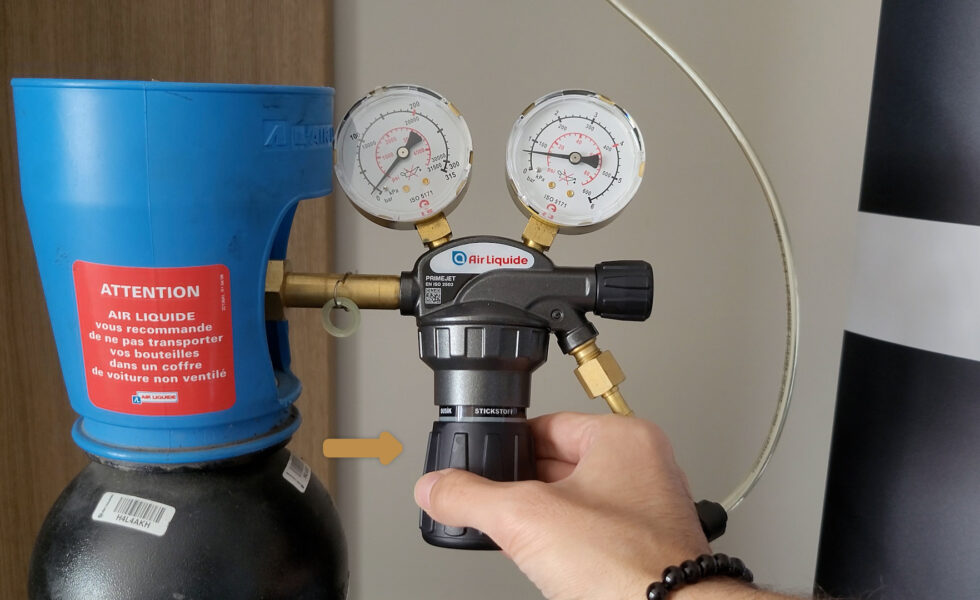 - Connectez la nouvelle bouteille et refaites le réglage du gaz.