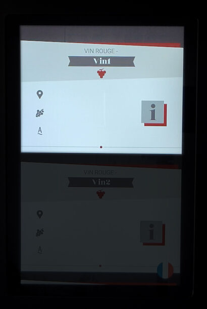 - Le bouton « i » permet d’obtenir des détails supplémentaires sur le vin sélectionné.